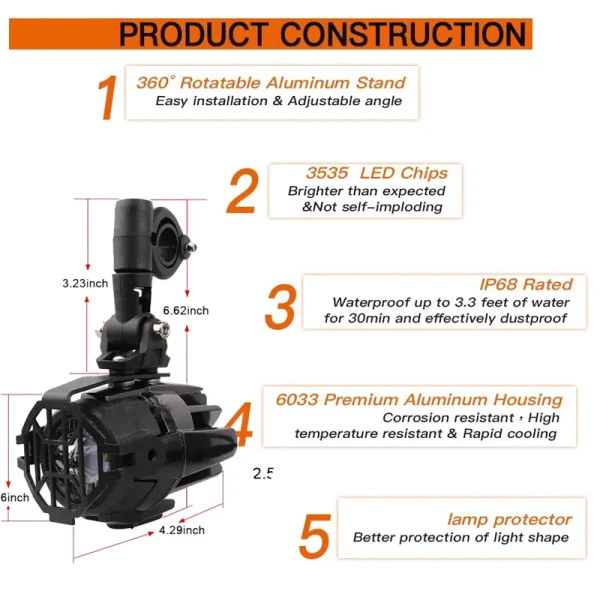 Technical Specifications: Type:Motorcycle Auxiliary Lamp Plug & Play on Bull Bars,Grille Guards,or any pre-drilled holes atop headache racks; Fitment: FOR BMW R1200GS ADV F800GS K1600,or other universal Motorcycles. |